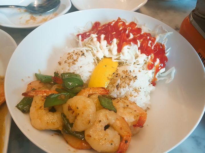 주문했던게 돈치탕, 칠리, 카레, 그리고 뭔지 모르는 새우 또 하나.....